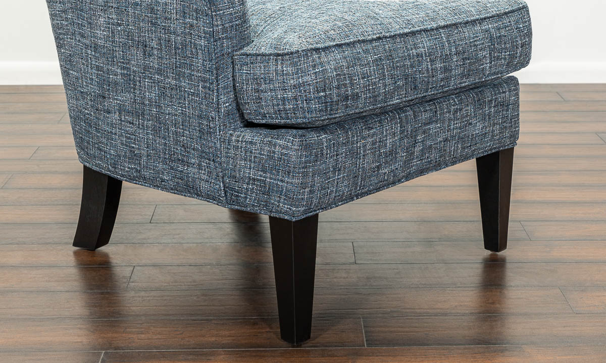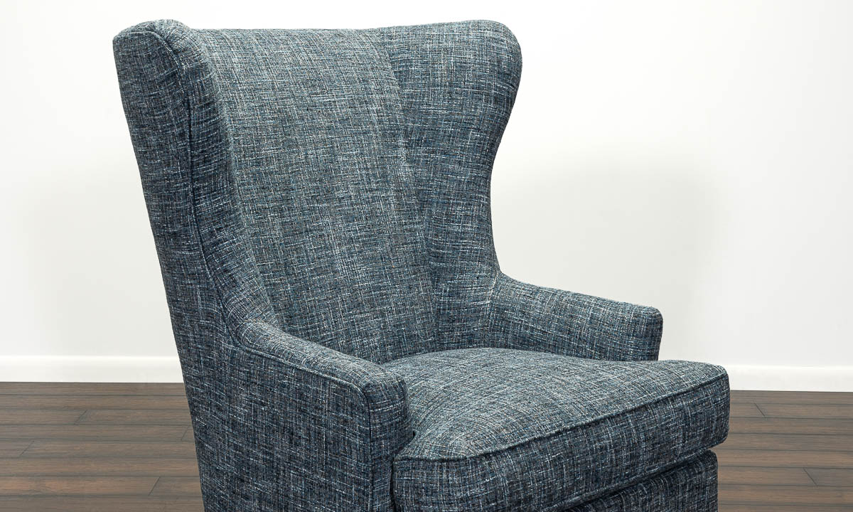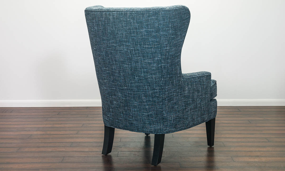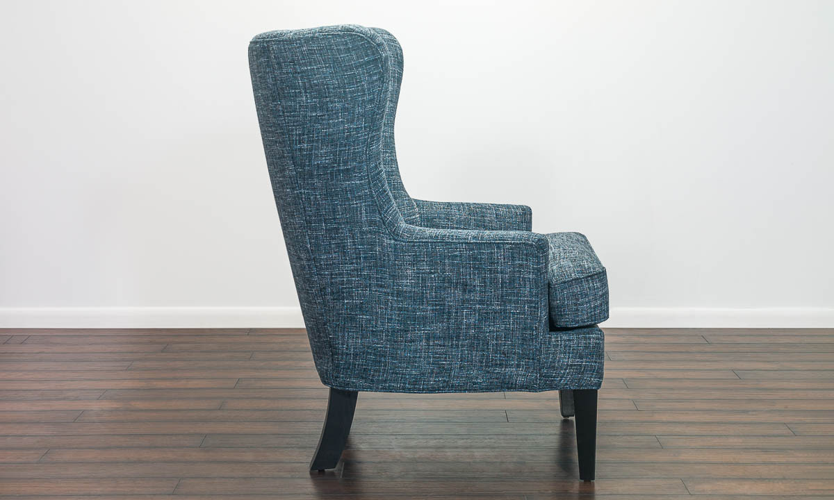 This beautifully upholstered wing chair will be an excellent addition, whether you need it for a family dinner or an extra seat when playing cards. This versatile accent wing chair is wrapped in deep, denim blue fabric upholstery to complement any contemporary home nicely.